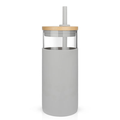 Tronco 20 oz Glass Tumbler with Lid and Straw, Iced Coffee Cup and Smoothie Cup with Bamboo Lids & Protective Silicone Sleeve, Dishwasher Safe, BPA-Free, Glass Cup 1 Pack