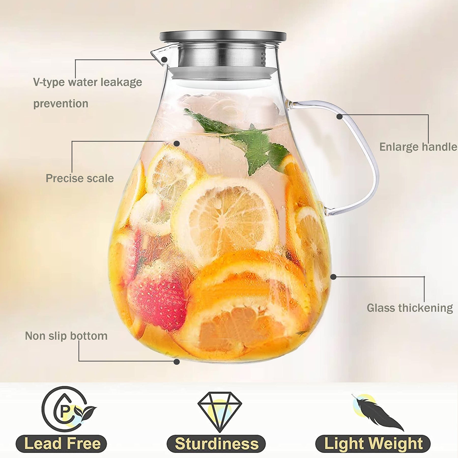- OCCASIONS FOR USE: The glass water jug is widely used, it is suitable for kinds of hot and cold drinks, such as hot water, iced tea, fruit tea, juice, and other DIY beverages. A perfect gifts for parents and friends on Christmas, birthday, anniversaries