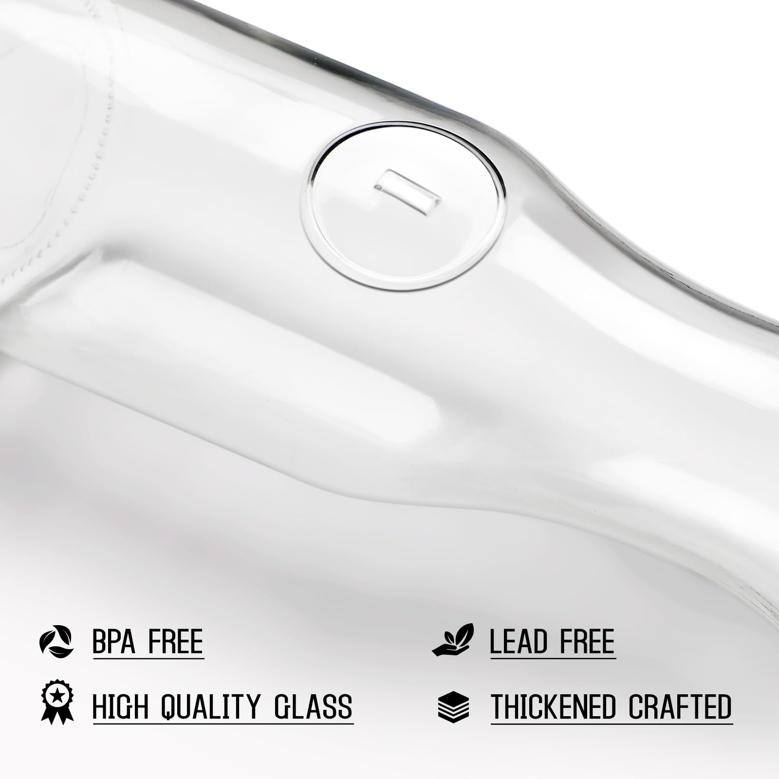 - Elegant and Thoughtful Design: With a clear and sophisticated design, these carafes not only enhance the presentation of your beverages but also feature a narrow neck design. This design allows for easy handling and pouring, ensuring a smooth, spill-free experience whether you're serving at a formal dinner or a casual gathering.